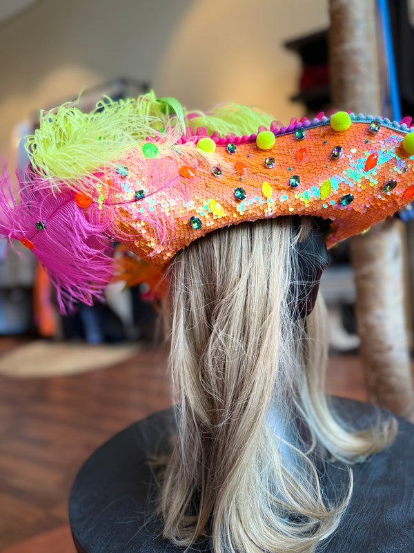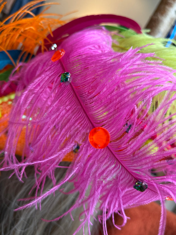 Besetzt mit hochwertigen Schmucksteinen und tollen, echten Straußen -und Hahnenfedern.