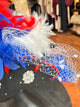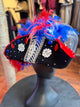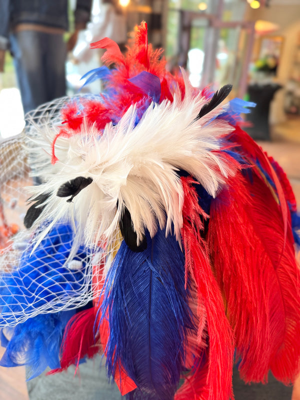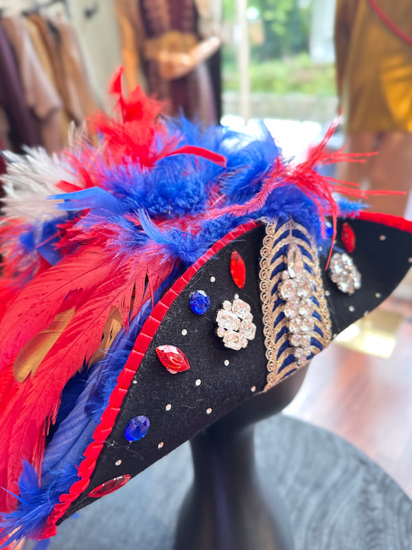 Dreispitz, schwarzer Fiilzhut mit rot, blau, weiß Dekoration