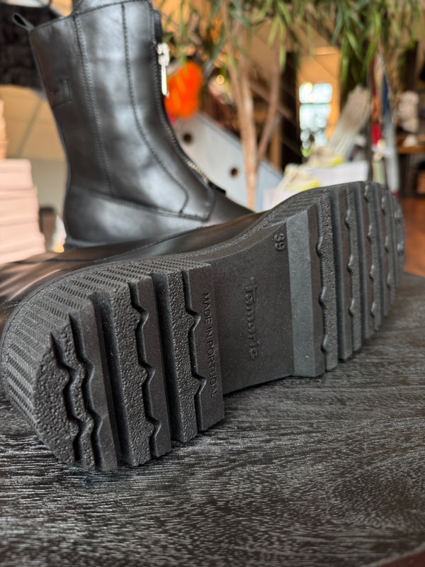 Leder Boot von Tamaris in schwarz mit breitem Profil.