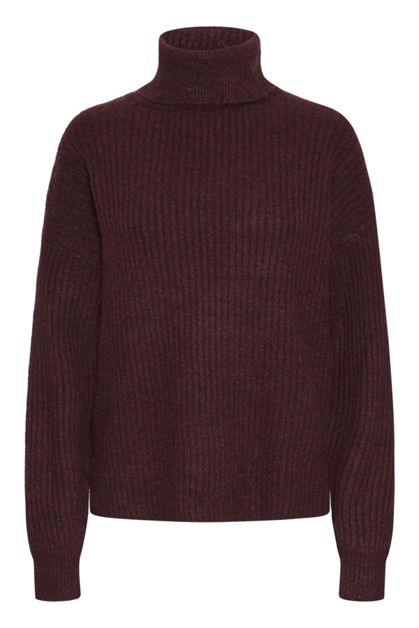 Grob gestrickter Rollkragen Pullover, Bordeaux.