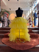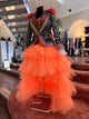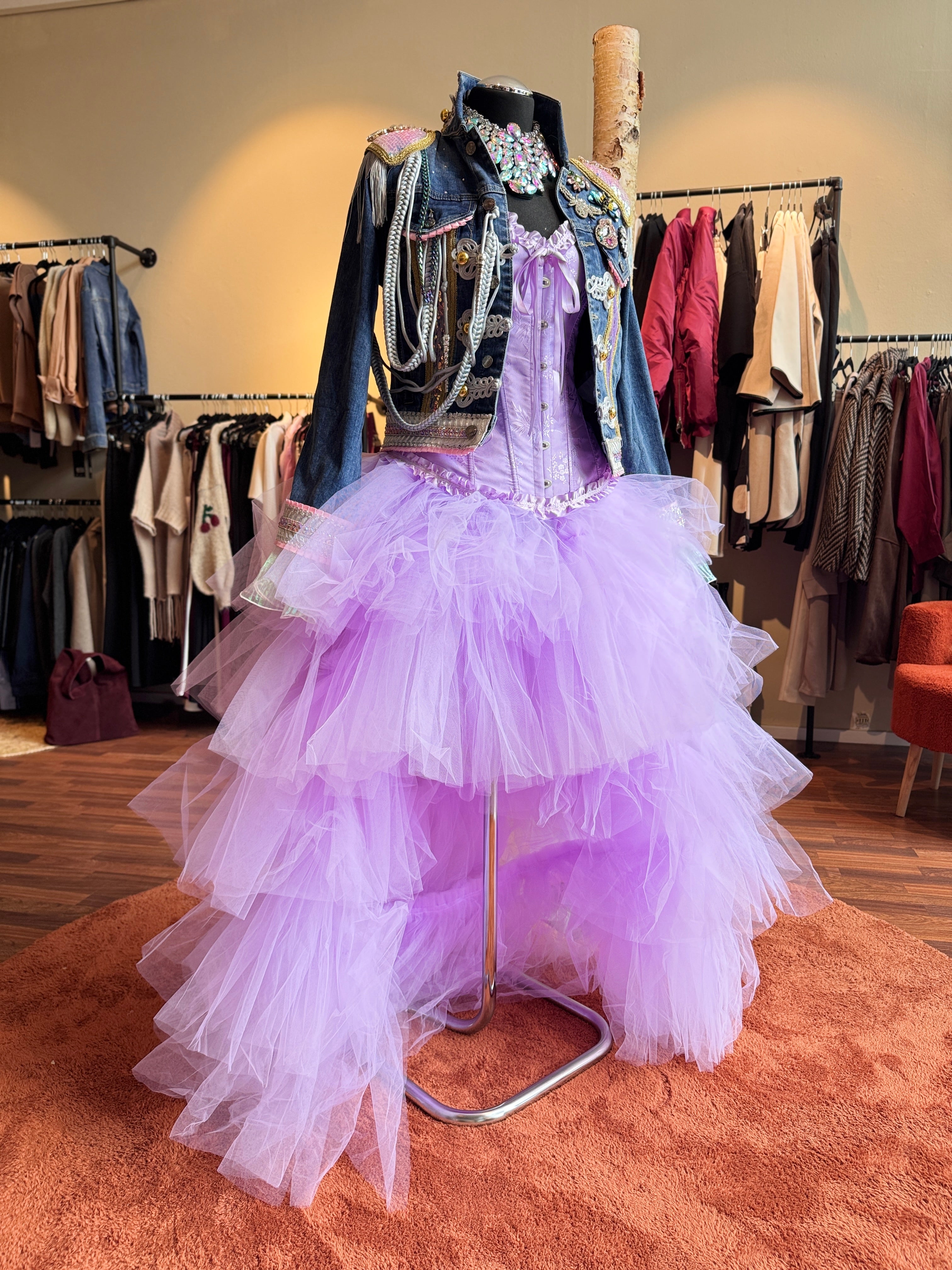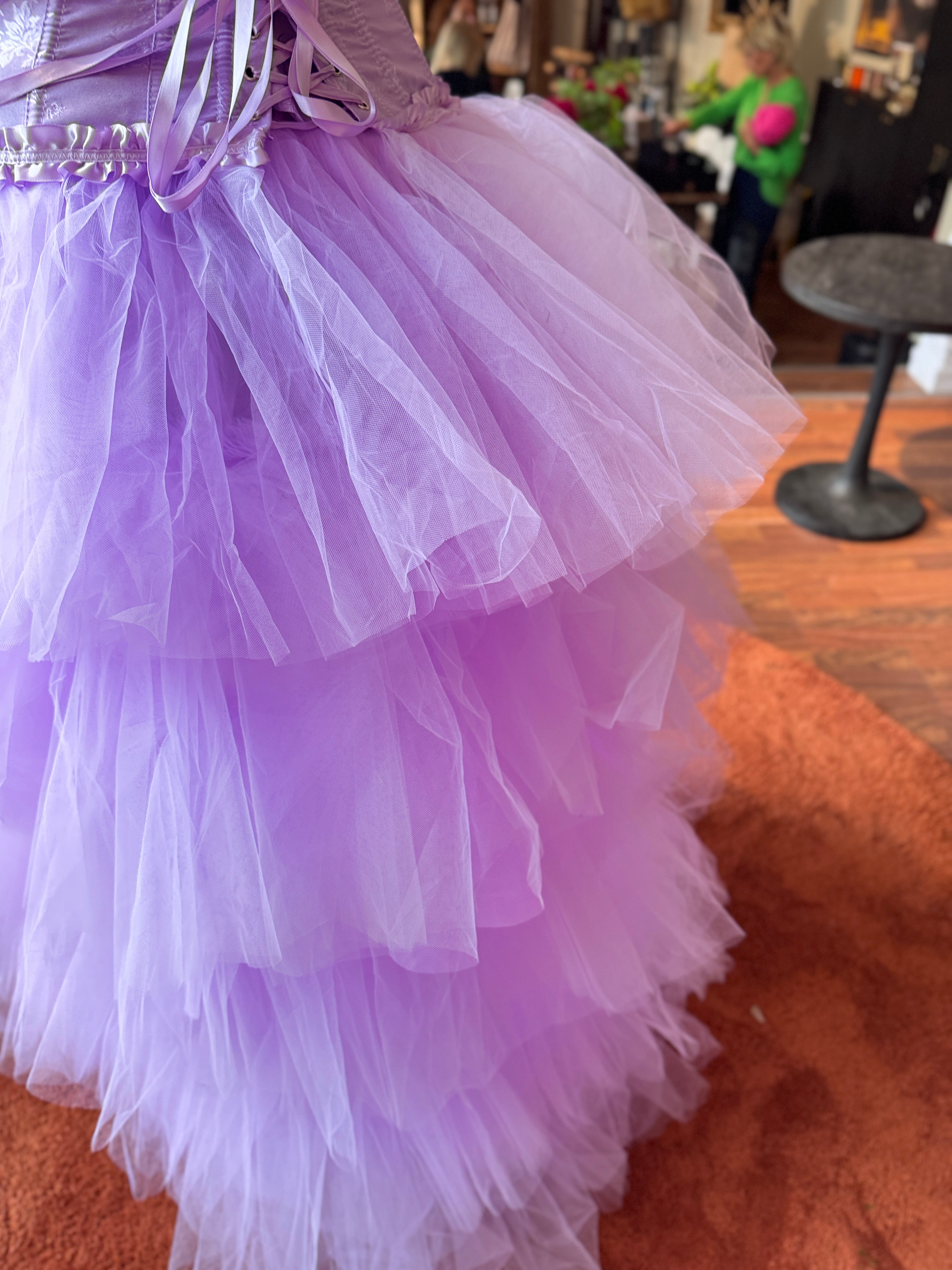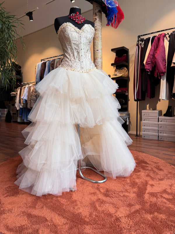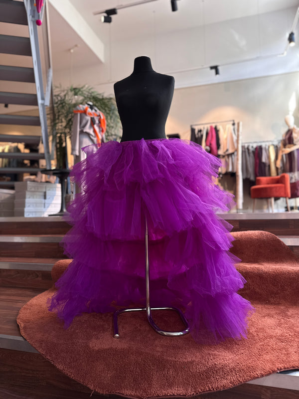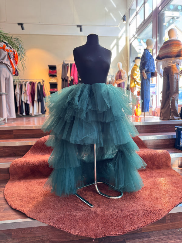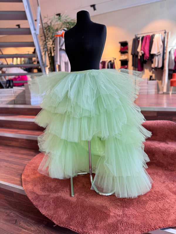 Ausladender Tüllrock, vorne kurz hinten lang.